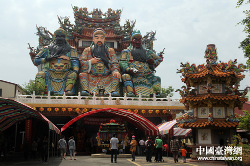 山西關公祖廟圣像抵達嘉義鎮天宮。(中國臺灣網 李典典 攝)