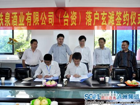 9月7日,臺(tái)灣商人巫鐵英在瀘州市玄灘鎮(zhèn)政府三樓會(huì)議室簽訂了瀘州鐵泉酒業(yè)有限公司投資落戶協(xié)議書。