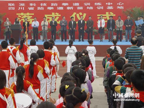 王文信表示,聯發科技將一如既往,繼續支持并與富發新建小學一道,共同努力辦好學校特色體育教育;四川省跆拳道運動管理中心主任康翔表示,將因地制宜,培養學生禮義、廉恥、忍耐、克己、百折不撓的跆拳道精神,力爭在專業上有所建樹;綿竹市委常委、副市長侯光輝衷心感謝臺灣同胞在“5. 12”大地震后對德陽抗震救災和災后重建給予無私援助與大力支持,他表示綿竹將不斷深化學生素質教育,從德智體美全面增進師生身心健康,豐富學校文化內涵發展;獨遠程代表德陽市臺辦對訓練中心的落成表示熱烈祝賀!他希望富發新建小學廣大師生珍惜與臺灣同胞結下的緣份,借助這一平臺加強和擴大與臺灣的教育交流,勤奮教學,刻苦學習,以感恩之心報效祖國,回報社會,面對兩岸關系新的歷史機遇期,積極推進兩岸關系和平發展,把各項工作和學習任務完成得更好。