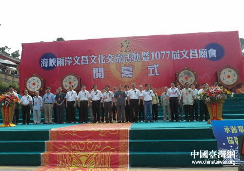 中國臺灣網8月30日綿陽消息 8月29日,由四川省臺辦、省旅游局擔任顧問,綿陽市人民政府主辦,市臺辦、旅游局及梓潼縣人民政府承辦,梓潼縣臺辦、梓潼縣文化旅游局、七曲山風景區管委會協辦的海峽兩岸文昌文化交流活動暨1077屆文昌廟會在梓潼縣七曲山隆重開幕。四川省政府臺灣事務辦公室副主任趙宇,省旅游局副巡視員謝海銀,綿陽市人民政府副市長、市公安局長任建民,市政協副主席文久喜,向陽公益基金會董事長廖正豪及來自海峽兩岸知名人士、文昌文化研究專家、文昌宮祠代表、宗教界及旅游界人士共200余人參加了開幕式。