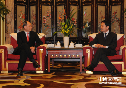 四川省副省長甘霖(右)在成都會見臺泥集團董事長辜成允(左)。(圖片來源:四川省臺辦)