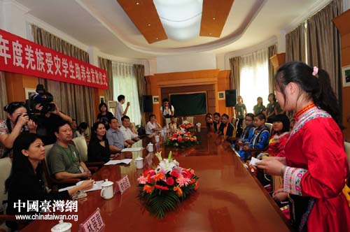 中國臺灣網8月10日成都消息 8月7日至10日,臺灣民意代表高金素梅率臺灣少數民族參訪團赴四川參加“2012年四川世界自然文化遺產之旅”活動,并在成都大熊貓繁育研究基地向其資助的20名北川羌族受災學生發放2012年度助養金74000元,這是她自2008年以來持續第5年資助羌族受災學生,迄今累計金額達34萬余元人民幣。