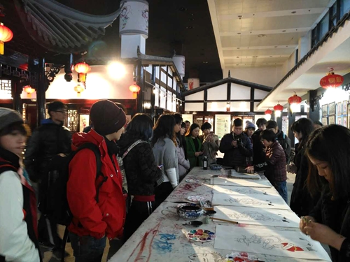 參訪團在綿竹年畫村體驗交流。