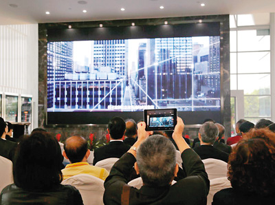 一位臺(tái)商對(duì)蓉歐快鐵十分感興趣,饒有興趣地記錄下蓉歐快鐵的介紹短片。(圖片由四川省臺(tái)辦提供)