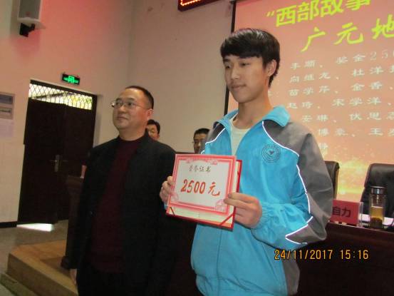 頒獎儀式上,來自蒼溪實驗中學、蒼溪職業中學、青川職業中學、朝天之江中學等千才萬事會員學校分別獲得“西部故事”第二屆原創作品大賽優秀獎、銅獎、銀獎、金獎和白金獎。此外,有27名學生分別獲得獎金;5所會員學校獲得數碼相機、平板電腦、筆記本電腦等獎品累計價值5萬余元。