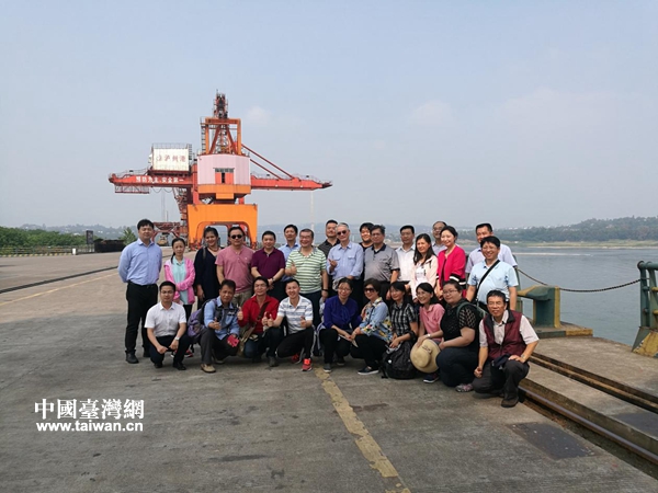 考察團一行在瀘州港合影留念。(圖片來源:瀘州市臺辦)