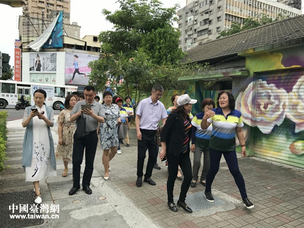 參訪團走訪社區(qū)綠色愛心步道。(圖片來源:綿陽市臺辦)