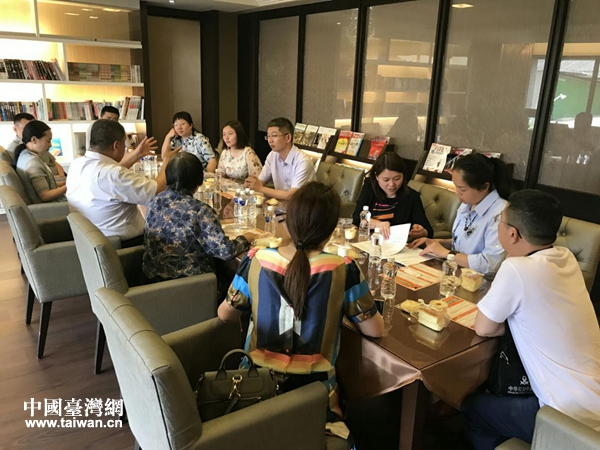 參訪團和高雄物業(yè)管理協(xié)會交流物業(yè)管理和小區(qū)治理經(jīng)驗。(圖片來源:綿陽市臺辦)