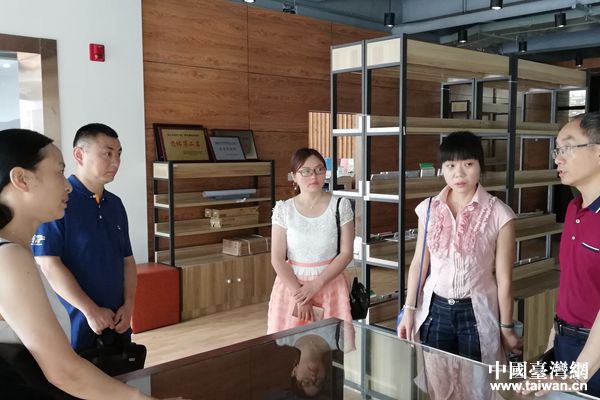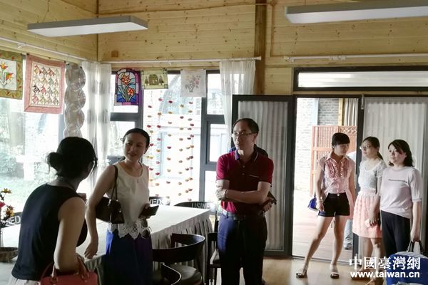 調(diào)研組在“126”文創(chuàng)園了解“女紅”和拼布文化培訓(xùn)基地開展教學(xué)和培訓(xùn)情況。(圖片來源:四川省臺辦)