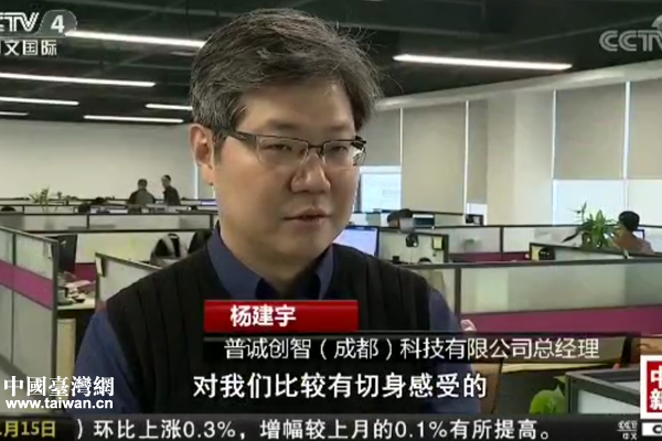 央視記者采訪普誠創智(成都)科技有限公司總經理楊建宇。(圖片來源:四川省臺辦)