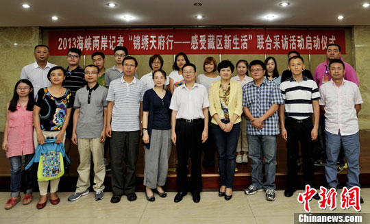 8月8日,2013海峽兩岸記者“錦繡天府行——感受藏區(qū)新生活”聯(lián)合采訪活動在成都啟動。圖為聯(lián)合采訪活動啟動儀式。安源 攝