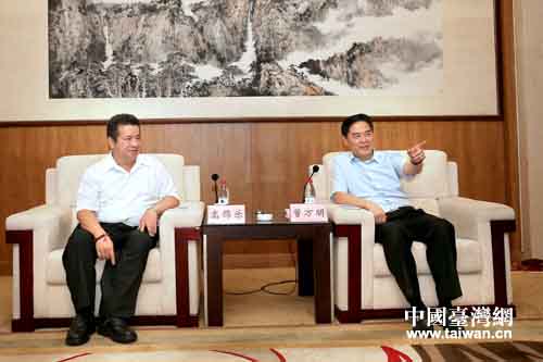 內(nèi)江市委書記曾萬(wàn)明會(huì)見成都臺(tái)商協(xié)會(huì)會(huì)長(zhǎng)高錦樂。(內(nèi)江市臺(tái)辦供圖)