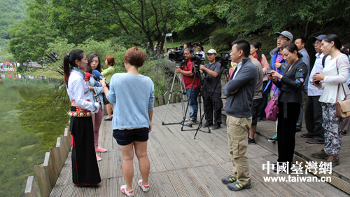 兩岸媒體在九寨溝進行聯合采訪。(中國臺灣網 馬迪 攝)