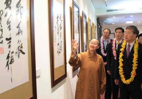 郭樹清一行參觀佛陀紀念館。人民網記者 任成琦 攝
