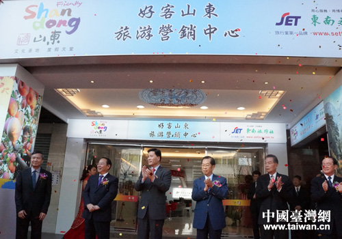 中國臺灣網10月31日臺北消息 10月28日上午,“好客山東”旅游營銷中心正式掛牌,該中心位于臺北最繁華的南京東路二段208號1樓,臺灣旅行業第一品牌東南旅行社南京路分店內,面積180平方米。山東省副省長夏耕和臺灣觀光協會榮譽會長張學勞、山東省旅游局局長于沖、海旅會臺北辦事處副主任李建平以及東南旅行社負責人等出席掛牌儀式并為活動剪彩。