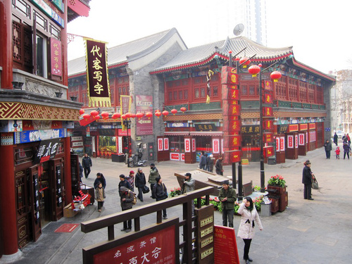 古文化街位于天津市南開區(qū)東門外的宮南大街、宮北大街,以天后宮為全街的中心,全長580米,是津門十景之一。整體建筑是仿清代民間建筑風(fēng)格,在宮南和宮北兩邊,各有一座彩繪牌坊,分別是“津門故里”和“沽上藝苑”四字,街內(nèi)的近百家店鋪均為清式建筑,門窗上多飾有彩繪圖案,內(nèi)容以歷史、神話、人物、花鳥為主,形式有透雕、浮雕、圓雕等。