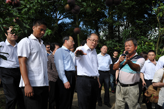 5月27日,李鴻忠在苗栗農(nóng)戶涂兆榮的果園參觀