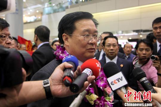 5月7日,湖北省代表團抵達桃園機場。將第二次在島內舉辦“臺灣周”。圖為湖北省長王國生抵達桃園機場接受媒體訪問。陳立宇 攝