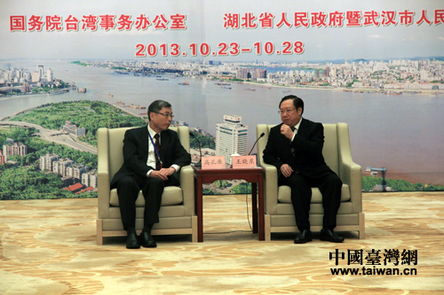 中國(guó)臺(tái)灣網(wǎng)10月24日武漢消息 第十屆“湖北·武漢臺(tái)灣周”今日即將開幕。昨日晚間,湖北省委常委、常務(wù)副省長(zhǎng)王曉東分別會(huì)見了海基會(huì)副董事長(zhǎng)兼秘書長(zhǎng)高孔廉一行,以及來漢出席第十屆湖北·武漢臺(tái)灣周的臺(tái)商代表團(tuán)。