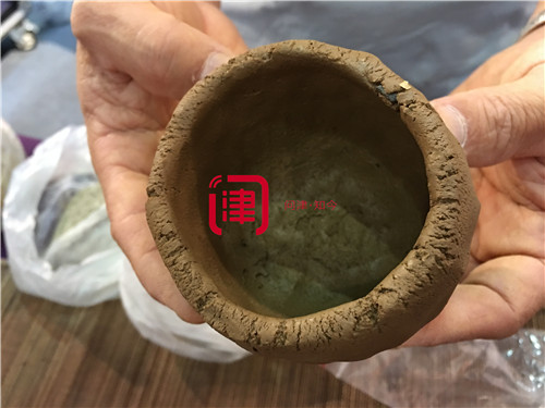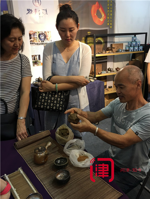 大師現場展示手工捏制。臺灣大肚山紅土柴燒茶杯受追捧。