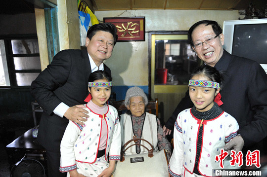 2月22日,廣西壯族自治區黨委副書記危朝安一行深入臺灣花蓮基層民眾家中和田間地頭,與他們敘親情、談友誼,共同探討農業生產發展之路。在萬榮鄉萬榮村,危朝安看望了80歲村民彭記妹,向她贈送了慰問品。圖為危朝安(右)、花蓮縣縣長傅崐萁與老人及老人孫女合影。中新社發 蔣雪林