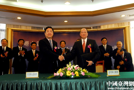 中國臺灣網9月16日青島消息 昨日上午,由臺灣東元集團和嶗山區合作建設的東元軟件園項目簽約儀式在海天大酒店隆重舉行。青島市政協副主席、發改委主任劉明君,臺灣工商協進會理事長、東元集團會長黃茂雄共同出席簽約儀式。