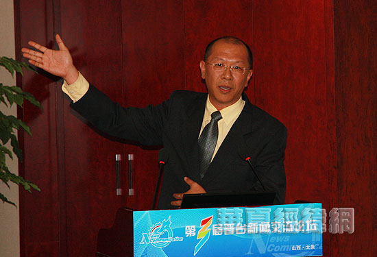 新浪山西CEO冷長明發言,題為《用新媒體平臺打造一個晉臺旅游同盟》。(攝影:虞鷹)