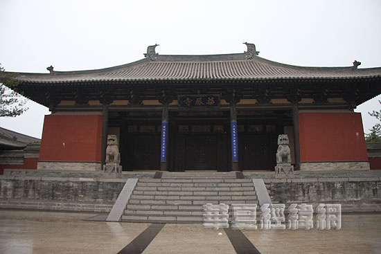 華嚴寺殿宇嵯峨,氣勢雄偉壯觀,是遼金時期我國華嚴宗重要寺廟之一。始建于遼,遼代佛教華嚴宗盛行,道宗亦曾親撰《華嚴經隨品贊》十卷,故云中(即云中郡,今大同雁北一帶)特建華嚴禪寺。因寺內曾奉安諸帝石像、銅像,當時還具有遼皇室祖廟性質。遼保大二年(1122年),寺內部分建筑毀于兵火,后重建,至元代初年仍不失為云中巨剎。明宣德、景泰年間大事重修,補塑佛像,勃然中興。明中葉以后分上下兩寺,各開山門,自成格局。清初寺院復遭摧折,幾經修繕,成今日之規模。現上下二寺雖連成為一體,仍各以一主殿為中心。上寺以金建大雄寶殿為主,分為兩院,有山門、過殿、觀音閣、地藏閣及兩廂廊廡,高低錯落,井然有序。下寺以遼建薄伽教藏殿為中心,保存有遼代塑像、石經幢、樓閣式藏經柜及天宮樓閣。下寺磚雕二門以東,又有天王殿、南北配殿和山門,別為一院。此寺主要殿宇皆面向東方,這與契丹族信鬼拜日、以東為上的宗教信仰和居住習俗有關。(虞鷹)