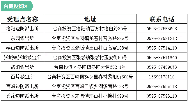 福建省公安廳副廳長杜清森表示,按照公安部的要求,全省要確定港澳臺居民申請居住證受理點,9月1日前向社會公布。從我省實際出發,本著“就近、便利”原則,為最大程度方便港澳臺居民申辦居住證,省公安廳決定全省公安戶籍辦理窗口均設立受理點,共有1217個(其中,1052個公安行政派出所、150個公安邊防派出所的戶籍辦理窗口、15個行政服務中心公安辦證窗口),所有受理點的詳細地址都將對外公開。9月1日恰逢星期六,我省公安機關受理窗口將正常上班,受理港澳臺居民居住證申請。