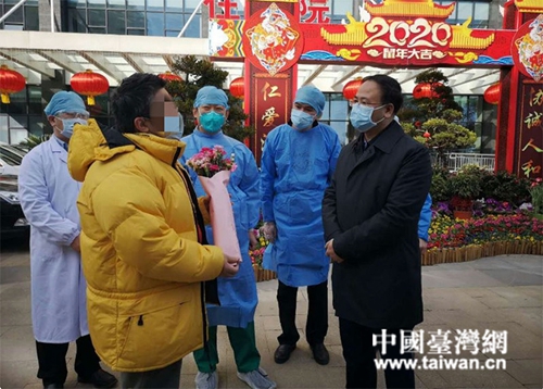 2月17日下午,湖北省臺(tái)辦、武漢市臺(tái)辦主要負(fù)責(zé)人一起前往金銀潭醫(yī)院、協(xié)和醫(yī)院,分別看望慰問(wèn)江先生、金先生并接他們出院。兩位臺(tái)胞對(duì)醫(yī)院積極有效的治療,對(duì)省市臺(tái)辦和各方的關(guān)心、幫助表達(dá)了由衷的謝意。