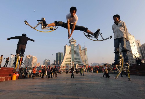 近日,一種健身“彈跳鞋”在貴陽(yáng)亮相,受到年輕人青睞。據(jù)悉,“彈跳鞋”源于中國(guó)的高蹺,由德國(guó)人研制開發(fā),是一種集娛樂(lè)、健身、時(shí)尚為一體的休閑運(yùn)動(dòng)器材,北京奧運(yùn)會(huì)閉幕式上“彈跳飛人”穿著“彈跳鞋”的表演至今令人難忘。 新華社發(fā)(吳東俊 攝)