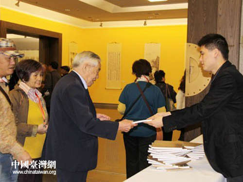現場贈閱“筑臺兩地書畫藝術家作品集”(貴陽市臺辦 胡珊珊 攝)