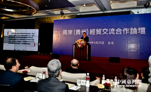 4月29日,兩岸(貴州)經(jīng)貿(mào)交流合作論壇在臺(tái)北舉行。(圖片來(lái)源:貴州省外宣辦)