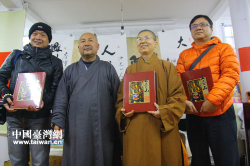 妙生大師(左二)與臺灣媒體記者留念