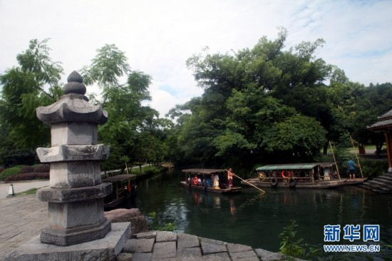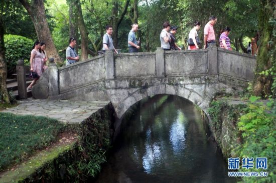 7月28日,游客從廣西桂林興安縣千年古靈渠旁的“狀元橋”上走過(guò)。廣西桂林境內(nèi)的靈渠距今已有2200多年歷史,是現(xiàn)存世界上最完整的古代水利工程和最古老的運(yùn)河之一,至今仍然發(fā)揮著灌溉作用。在當(dāng)?shù)卣挠行У乇Wo(hù)下,如今的古靈渠生態(tài)優(yōu)良,風(fēng)景如畫,吸引各地游客慕名前來(lái)觀光旅游。 (王滋創(chuàng) 攝)