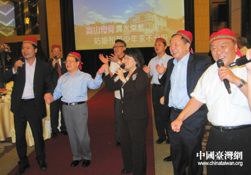 中國(guó)臺(tái)灣網(wǎng)8月24日嘉義消息 8月23日,在位于阿里山腳下的嘉義市耐斯王子大酒店舉行的歡迎午宴上,中國(guó)國(guó)民黨副主席、嘉義市長(zhǎng)黃敏惠邀請(qǐng)到訪的江西省長(zhǎng)鹿心社一行攜手共唱臺(tái)灣著名歌曲《阿里山的姑娘》,充分展示出兩岸同胞的深情厚誼。(中國(guó)臺(tái)灣網(wǎng)、江西省臺(tái)辦聯(lián)合報(bào)道)