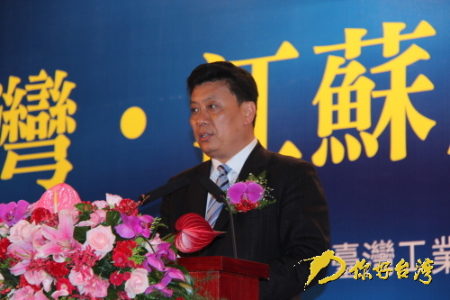 資料圖:江蘇省昆山市委書記管愛國5月23日在2012臺灣 江蘇周經貿合作交流會上宣布昆山市協助臺商轉型升級的“新28條”發展政策。(你好臺灣網 安亞強 攝)