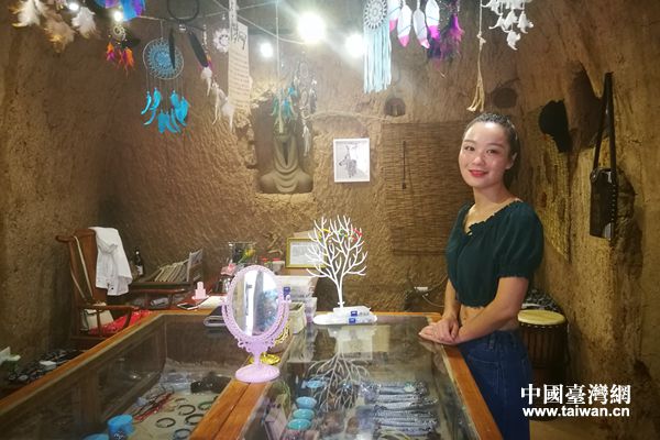 80后美女老板返鄉創業建立窯洞商鋪。(中國臺灣網 王莉婷 攝)