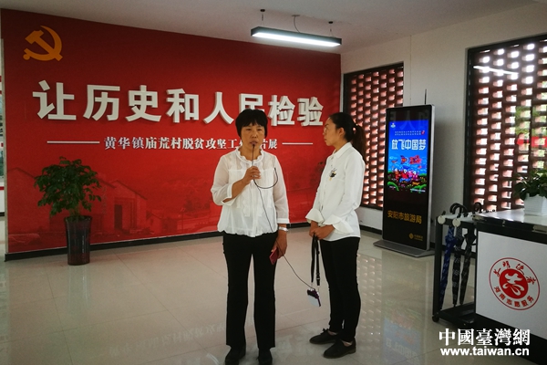 廟荒村村支部書記郁林英介紹村子情況。(中國臺灣網 王莉婷 攝)