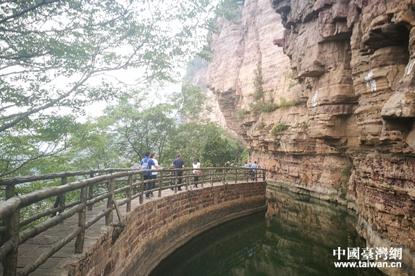 以太行山山脈開鑿的紅旗渠。(中國臺灣網 王莉婷 攝)
