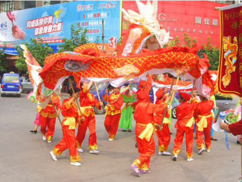 “魚鳧彩龍”源于瀘州市敘永縣城南老魚鳧鄉(xiāng),距今已有500余年歷史,“魚鳧彩龍”造型獨特,美觀漂亮,龍頭形大雄勢,龍須、龍角、龍眼非常夸張,更能體現(xiàn)川南山區(qū)人民的豪爽、粗獷性格,與全國各地彩龍造型有所不同,彩繪別具一格,在全國可謂獨樹一幟,“魚鳧彩龍”表演形式為群舞,最少有5人舞,最多為15人舞,“魚鳧彩龍”在表演中造型精彩,套路豐富,在不斷變化的太極圖形中相繼呈現(xiàn)“龍出宮”、“龍喝水”、“龍搶寶”、“龍翻滾”、“龍擺尾”的數(shù)十個玩耍動作,在表演時以熱烈且川味濃郁的川劇鑼鼓、嗩吶為伴奏,既有旋律的可聽性,又增強了龍舞場面的情趣性、可看性、熱鬧性,使其場面更加精彩,氣勢更加恢弘。
