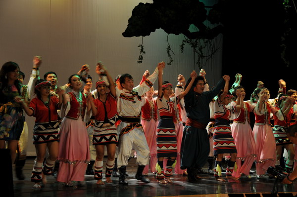 16日,文化交流團來到臺北市烏來鄉原住民部落烏村進行文化交流演出。來村劇場每天上下午上演舞劇《發現烏來》,向人們訴說者泰雅族人誕生的傳說。文化交流團演員們觀看了由20多名泰雅族年輕人表演的泰雅族舞劇后,感慨萬分,他們都是用歌舞傳唱著民族的歷史和文化。