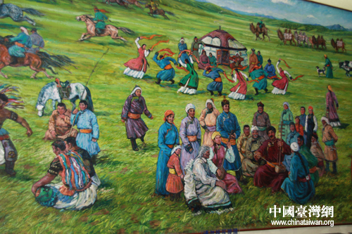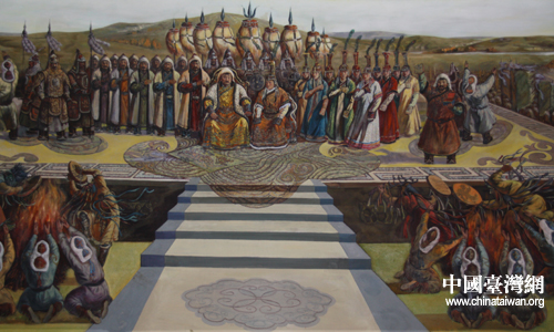 大型油畫《成吉思汗建立蒙古帝國盛典》(中國臺灣網 陳寧 攝)