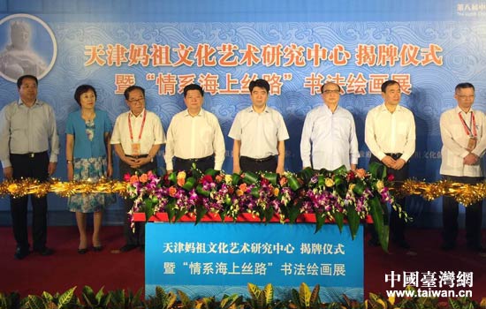 天津媽祖文化藝術研究中心成立暨媽祖-情系海上絲綢之路書畫展。(記者 吳曉寒 攝)