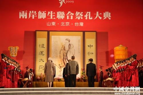 中國臺灣網9月27日新竹消息 中華世胄,一脈同源。今天上午,2009年第二屆兩岸師生聯合祭孔大典在臺灣新竹縣立體育館舉行。兩岸三地杰出青年攜手,共祭中華先哲孔子,為孔子2560周年誕辰紀念暖壽。