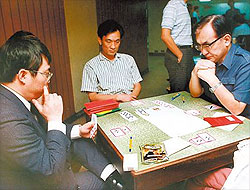 1992年聶衛(wèi)平與臺灣“清大”教授沈君山在臺北市聯(lián)手參加一場橋牌賽,聶衛(wèi)平稱沈君山是最佳拍檔。圖片來源:中國時報