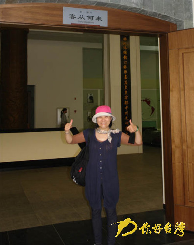 臺灣新客家廣播電臺主持人張美鳳對客家博物館豎起大拇指。(你好臺灣網 陳黎琴 攝)