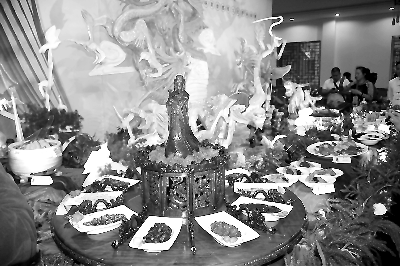 新版“媽祖宴”也十分吸引人,由莆田市烹飪協(xié)會(huì)的廚師們創(chuàng)制的“恩澤寰宇”、“媽祖壽面”、“鎮(zhèn)海平番”、“福佑群生”等13道菜肴設(shè)計(jì)精巧,在海內(nèi)外享有盛譽(yù)。