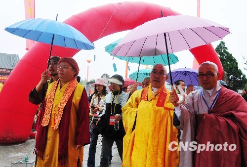 11月15日,臺灣中國佛教協會理事長凈良長老、中國佛教協會副會長、少林寺方丈永信法師、臺灣茶禪文化協會理事長、佛法山開山宗長圣輪法師等兩岸高僧大德齊聚福建福鼎論禪茶。當日,首屆中國·太姥山資國禪茶文化國際研討會在福鼎舉行。 中新社發 王東明 攝
