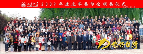 山東大學獲2009年度光華獎學金學生與頒獎領導合影(你好臺灣網 圖)
